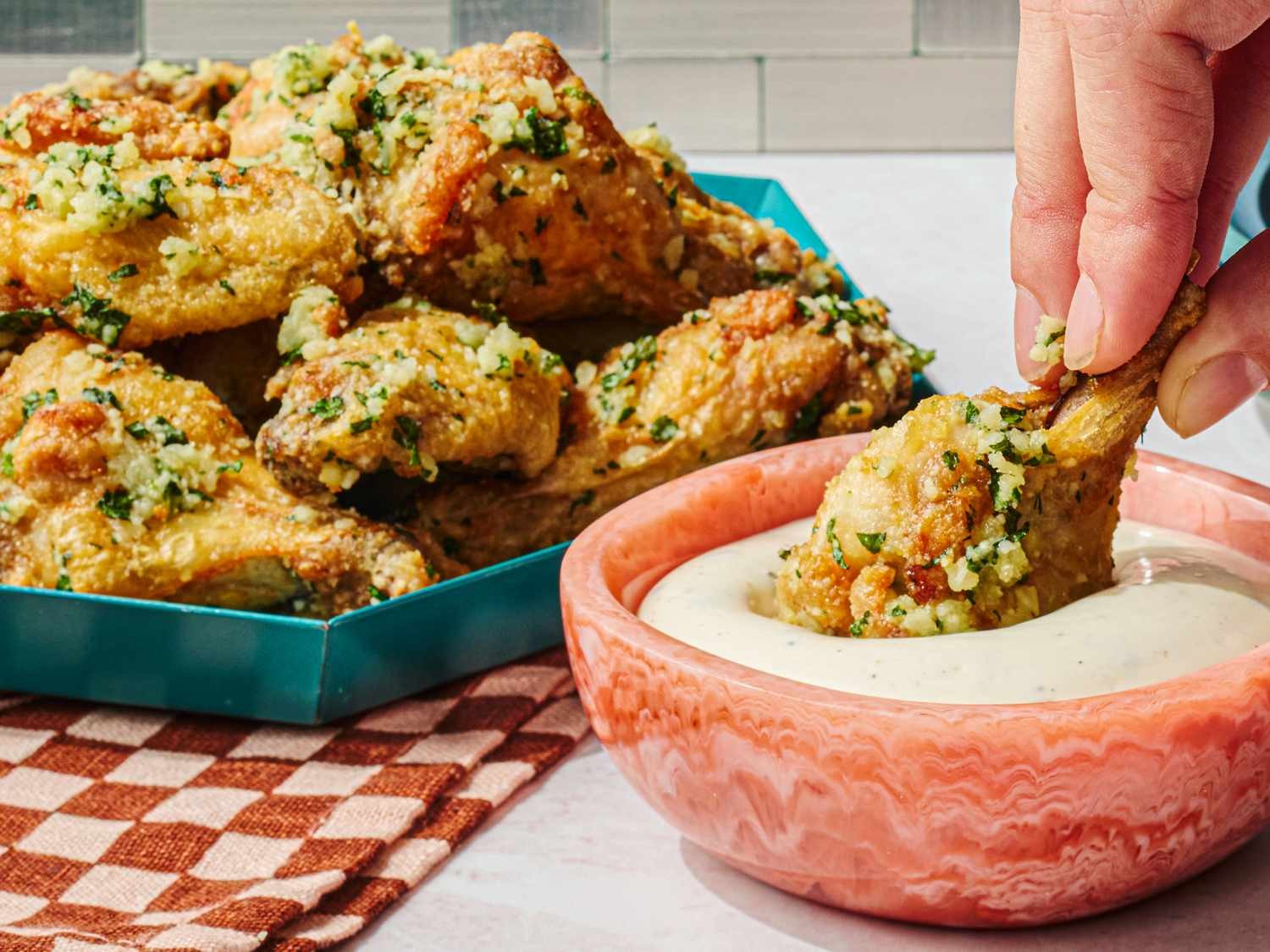 The sauce is as quick as the cooking method: butter and minced garlic are gently microwaved until bubbling, softening the garlic without burning it. Grated Parmesan, parsley, and salt are stirred in while hot, creating a glossy coating that clings to the wings. Microwaving eliminates the risk of scorching and avoids extra cleanup.