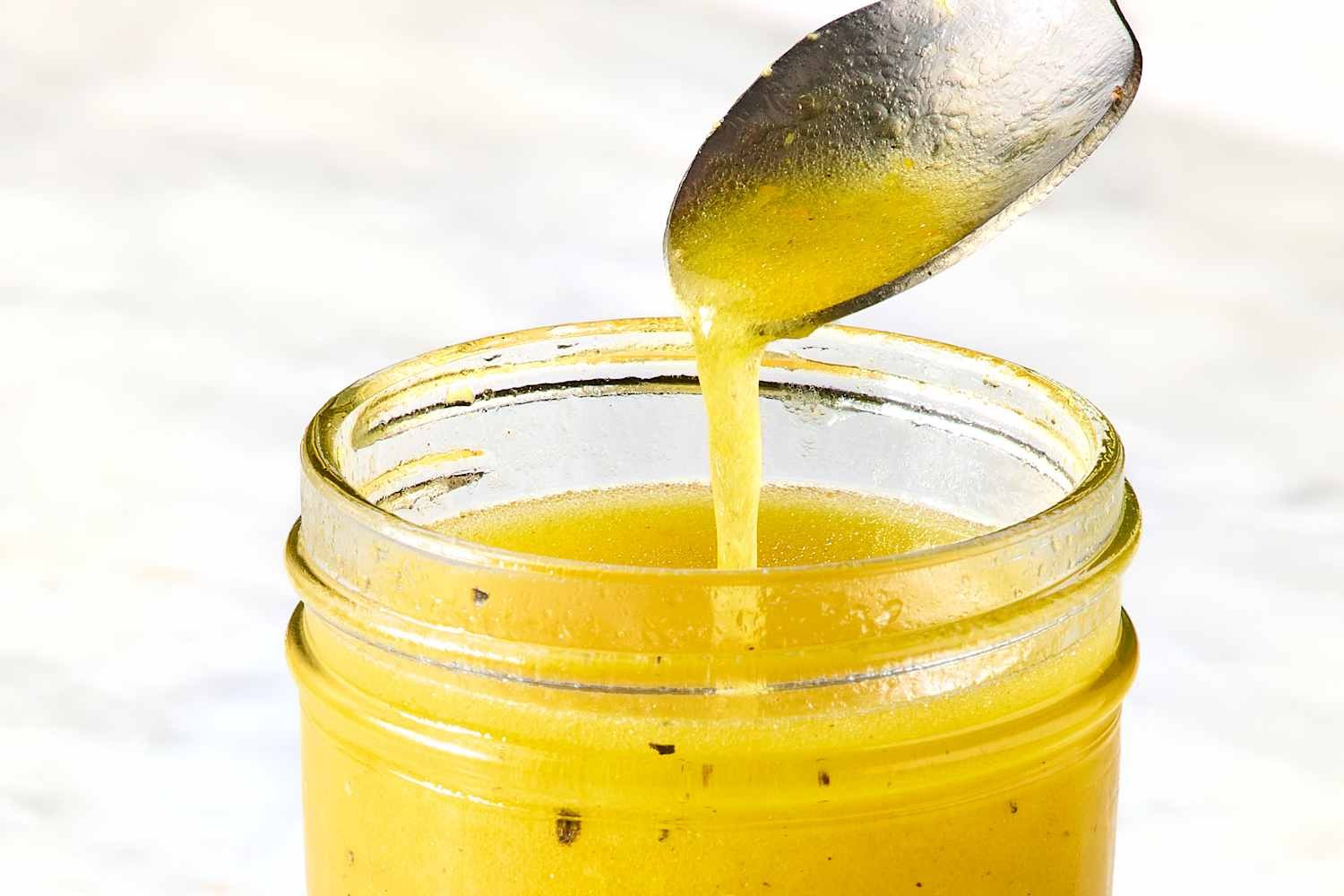 - Condire: aggiungere miele, sale e pepe. Sbattere o agitare il barattolo fino a quando il miele non sarà completamente sciolto.